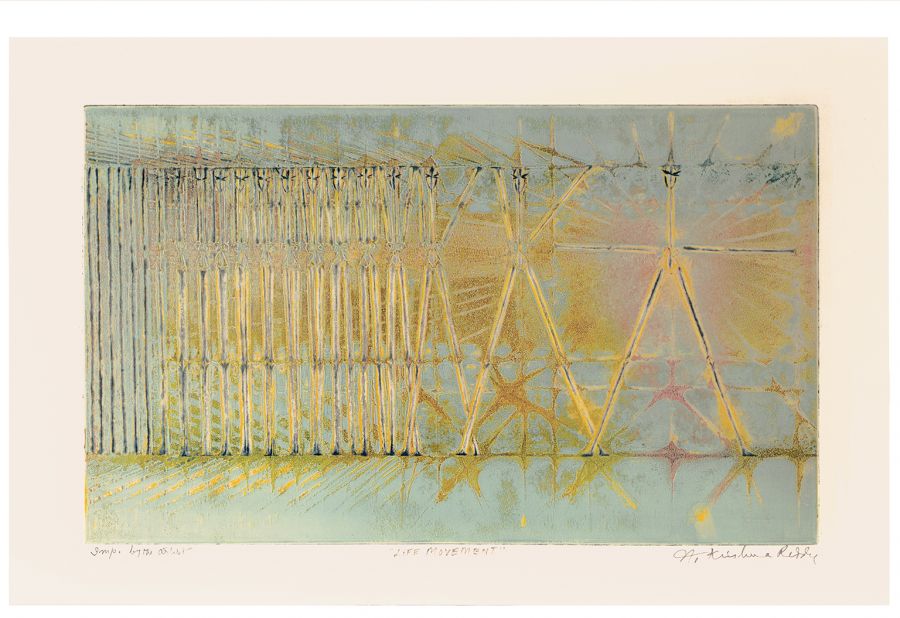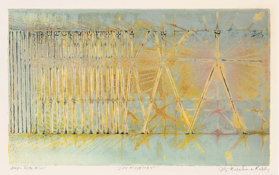 Krishna Reddy, Life Movement, color viscosity intaglio, edition 10, a proof apart from the numbered edition, 1972. Signed, titled, and annotated Imp. by the artist in pencil. Very scarce.