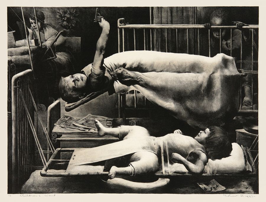 The image is of patients in the orthopedic section of St. Christopher’s Hospital for Children—an important work of social conscience.