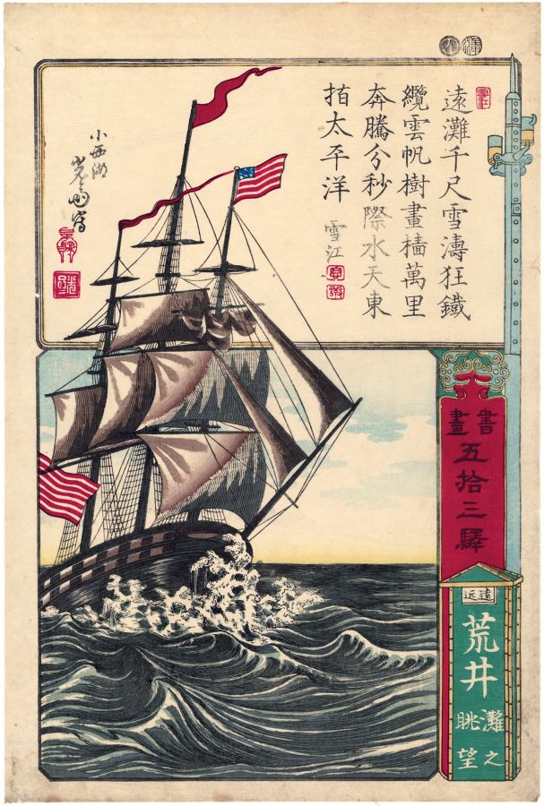 Title: American Ship off Arai 書画五拾三駅 遠江 荒井 灘之眺望