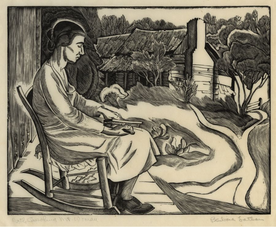 The silent dignity of this woman from the Appalachian Mountains, carding wool,